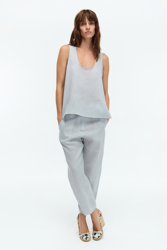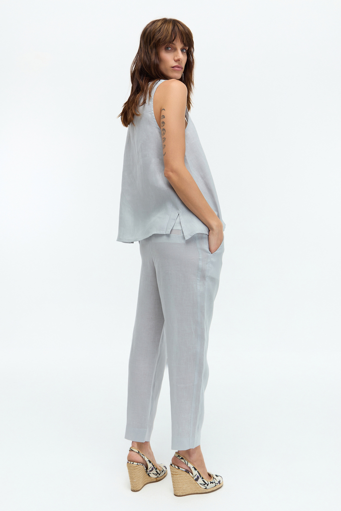 Pantalon Baggie en Lino 100% de lineas puras, bolsillos inclinados, cintura con broche y elasticos laterales para dar amplitud y comodidad a la cintura.