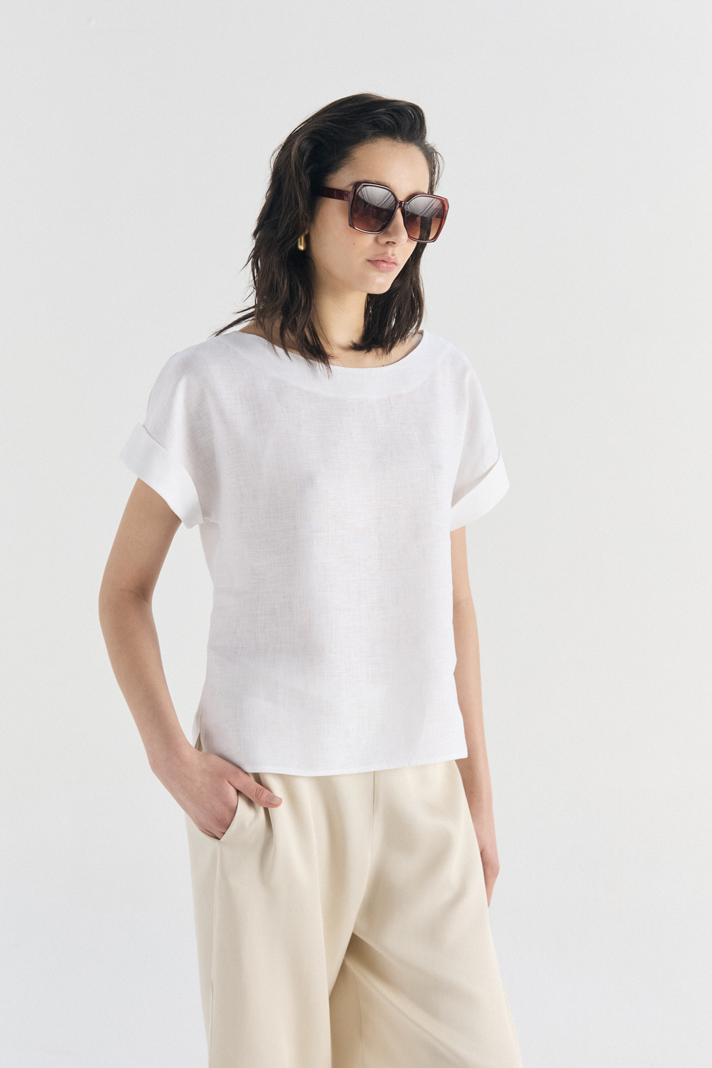 Top cuello bote en Puro Lino. El escote es muy limpio con mangas estrategicas.